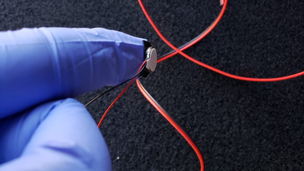 The polarity does not matter… The motor is advertised to work up to 3v (I’ve given it up to 5v which can cause it to heat up a bit). If you were to tape everything in place, that would make vibration goodness… At ~50mA @3V, this would probably run for a few hours on a 2032 battery. FWIW, these things are very quiet… So, if they happened to be under clothes in a bar or restaurant, nobody would be the wiser.