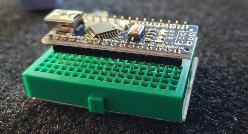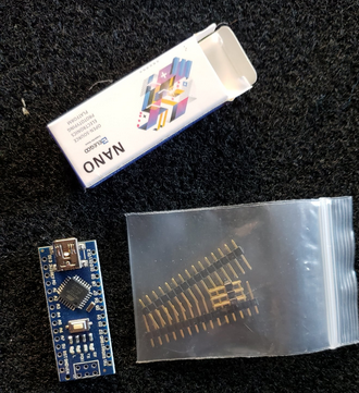 When you bought the Arduino Nanos, they come as little boards with a separate baggy of header pins. In order to attach the pins, it is very handy to have a little breadboard — here are some more references: